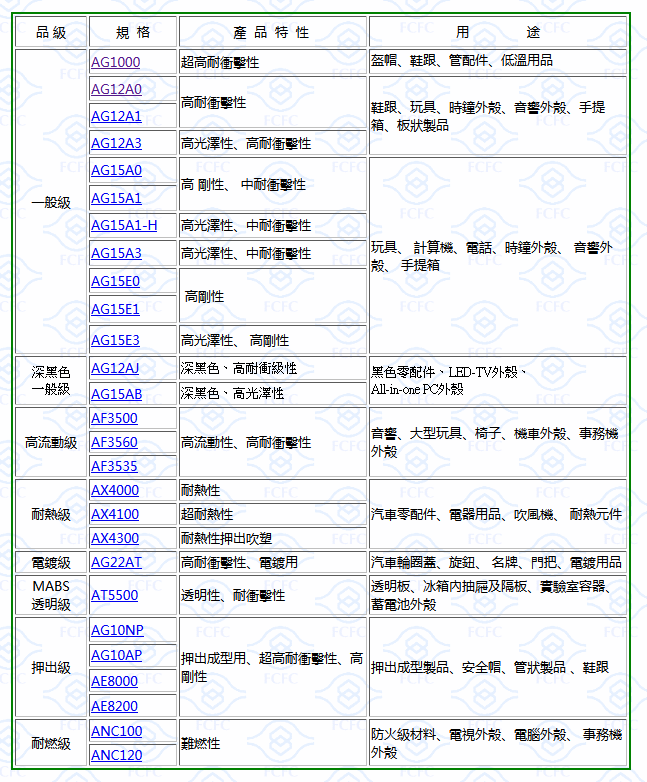 | AF3500 | 詳細資料 | 音響、大型玩具、椅子、機車外殼、事務機外殼 | 高流動性、高耐沖擊性 | 加工建議參數 SDS UL RoHSSVHC 環(huán)保證明 物性表 |