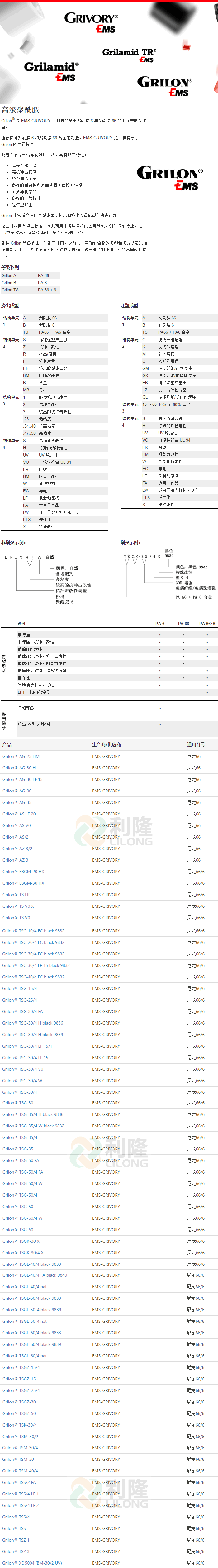 >> 瑞士EMS系列GRILON品牌聚酰胺尼龍PA66塑膠原料